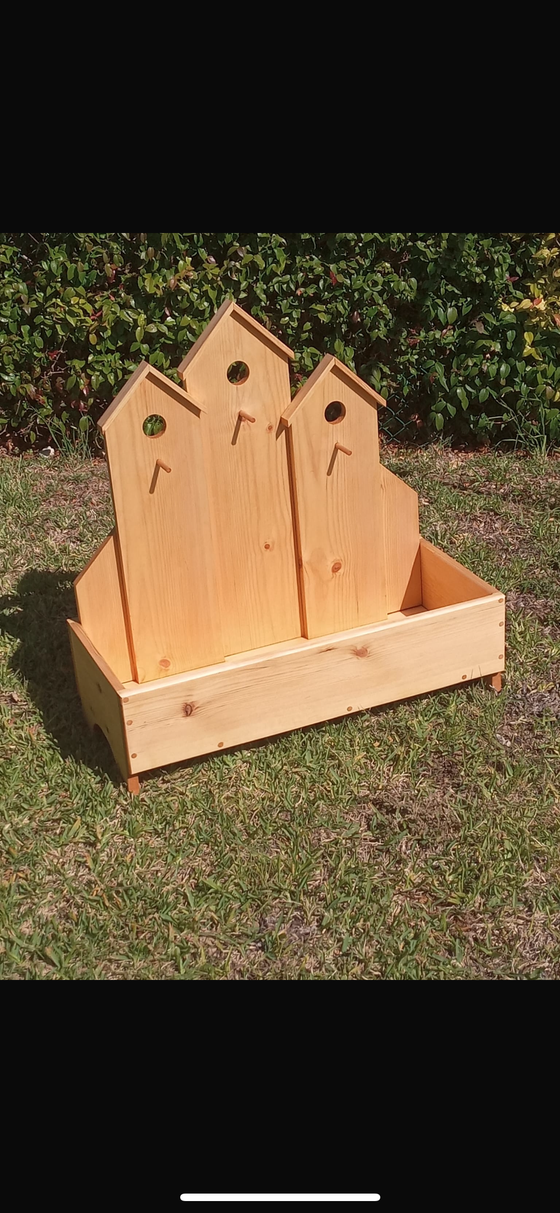 Bird box planters. Made out of white pine. Sealed for outdoor use.